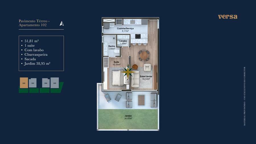 Área Privativa: 52,54m²