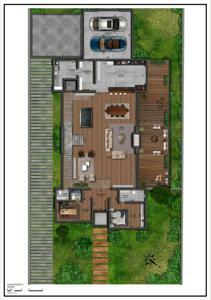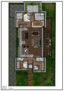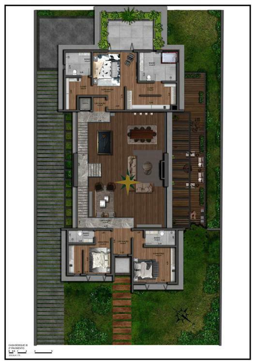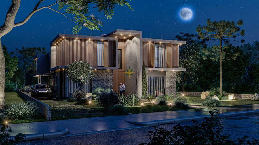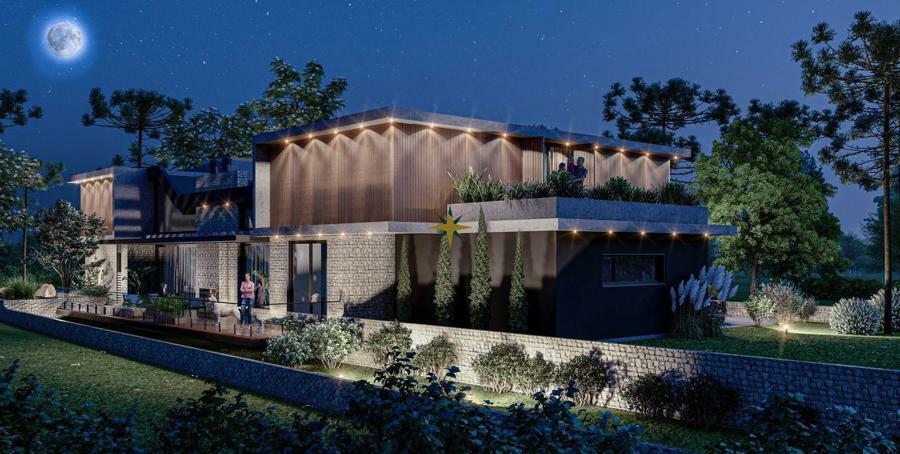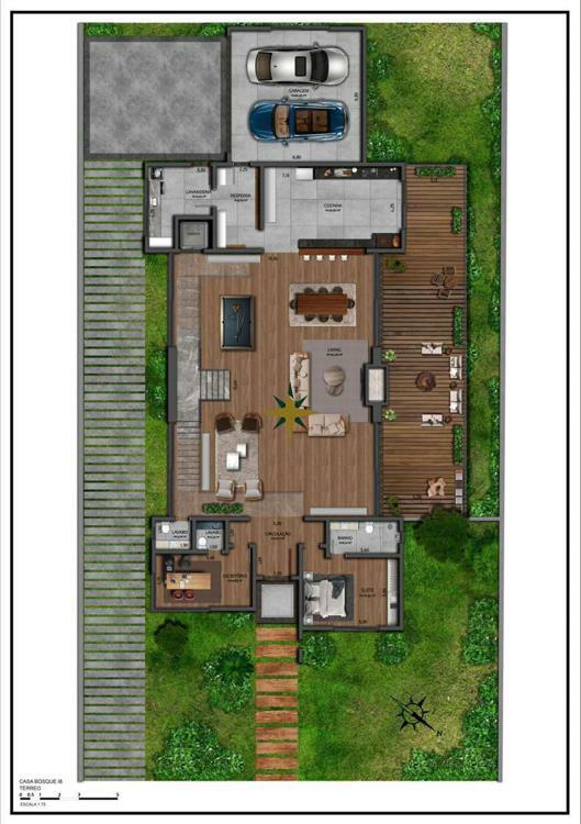 O terreno possui 1.178,78 m² e a casa será contemplada com 644,08 m² privativos de área construída, contando com: